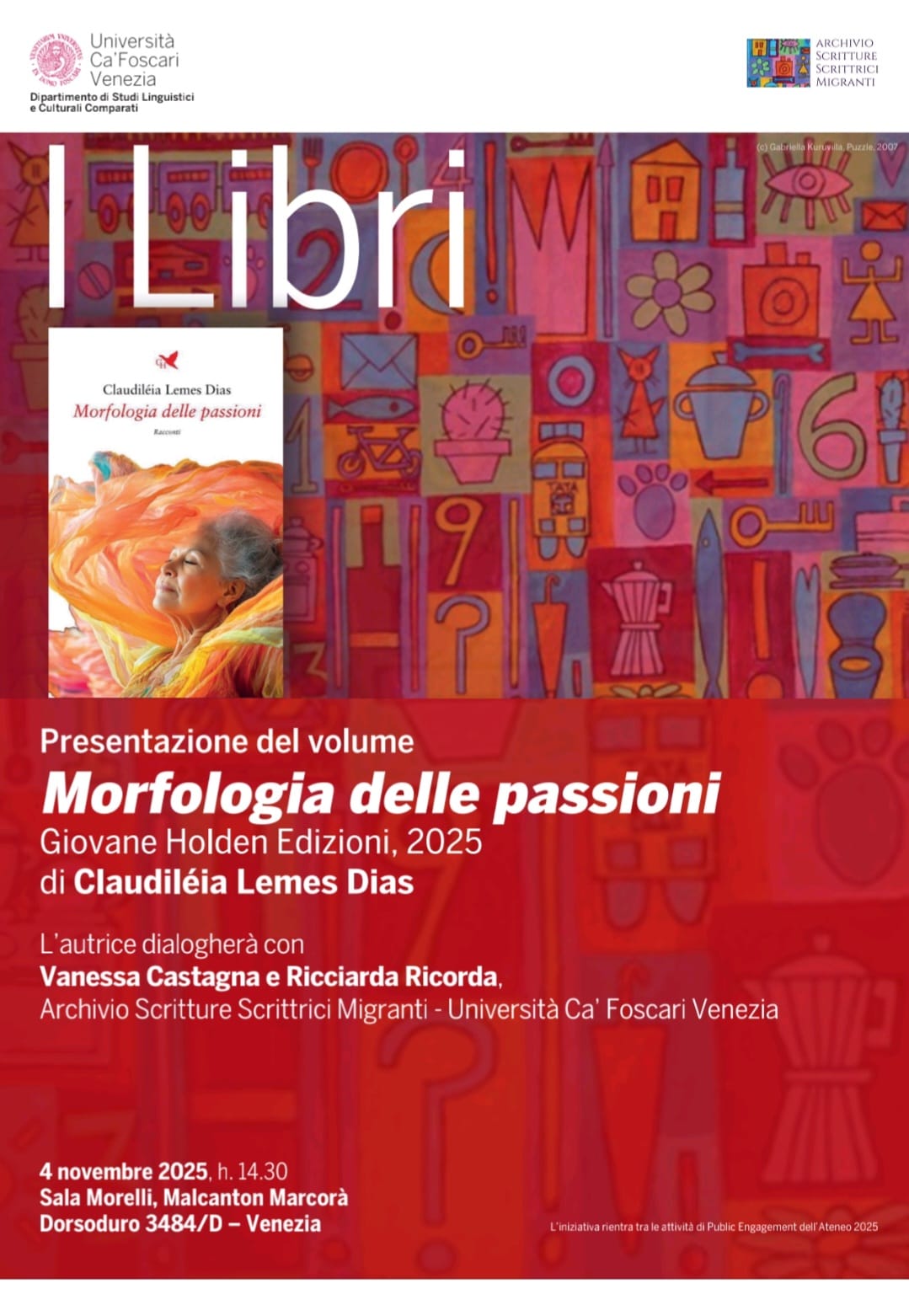 E ancora tanti altri appuntamenti con le autrici CLM: Claudiléia Lemes Dias (a Venezia con due appuntamenti il 4 novembre e a Firenze il 13 e il 15 novembre), Yuleisy Cruz Lezcano (a Priverno l’8 novembre), Bahar Heidarzade (a Torino, con una mostra aperta fino al 4 dicembre).