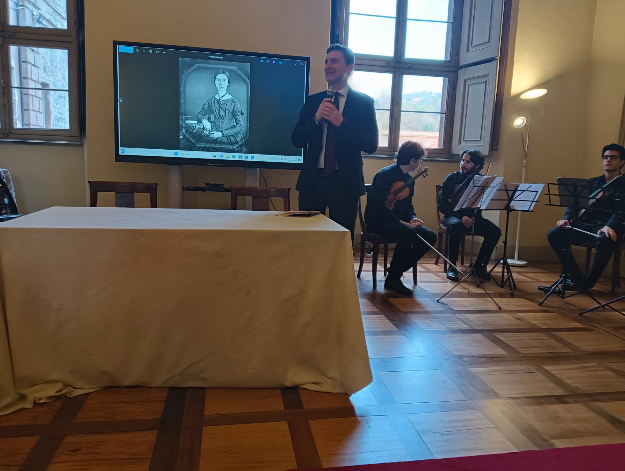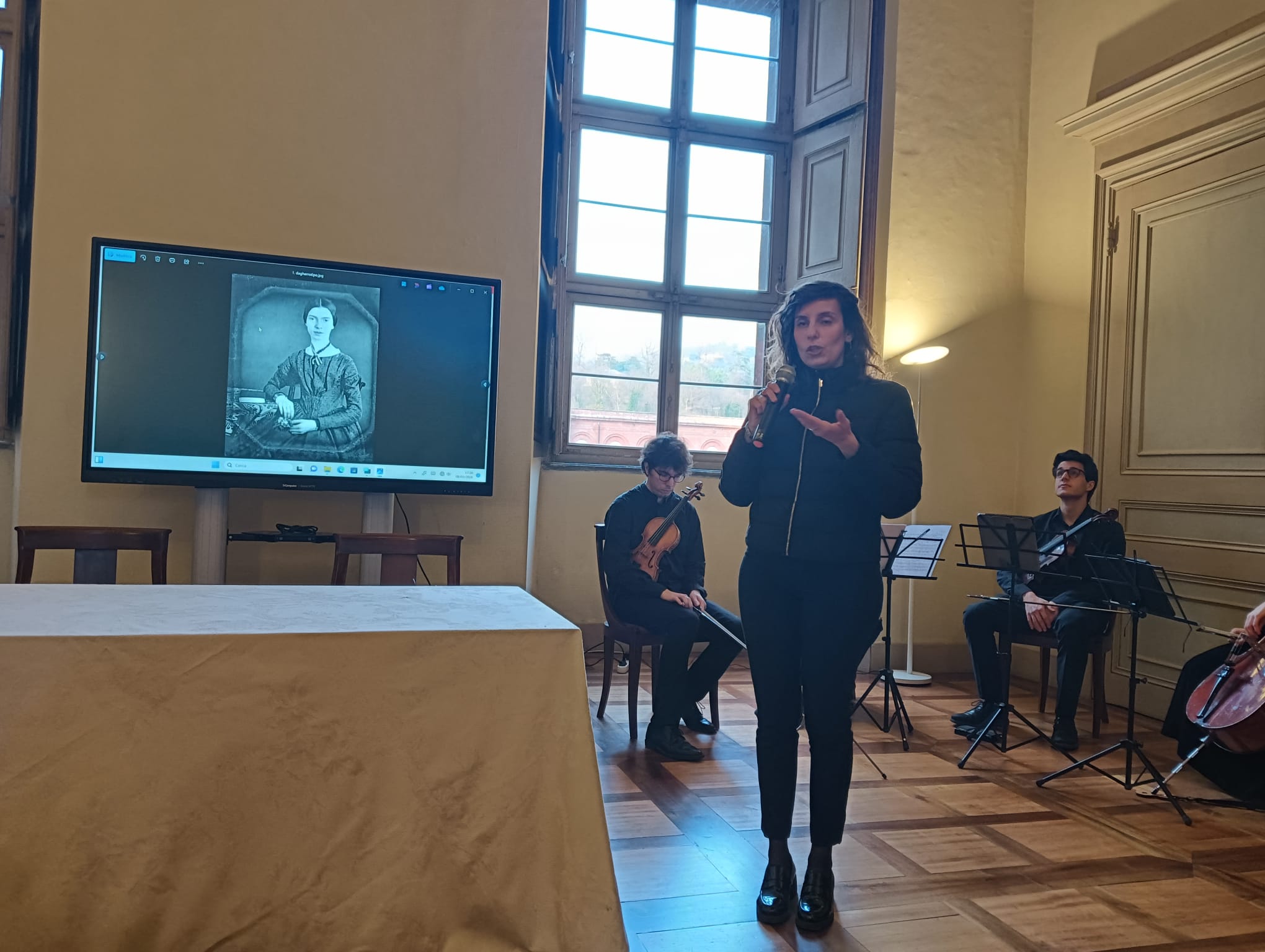 Nel corso della serata è stato possibile esplorare l’universo poetico della scrittrice americana attraverso la lettura delle sue poesie e di alcuni frammenti epistolari inediti, declamati dalla voce esperta di un’attrice e alternati all’incantevole suono di un quartetto d’archi mentre su uno schermo si proiettavano le fotografie delle partecipanti al CLM.