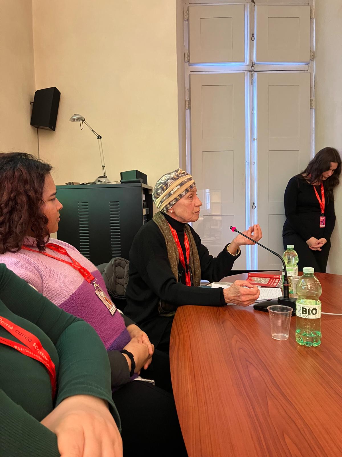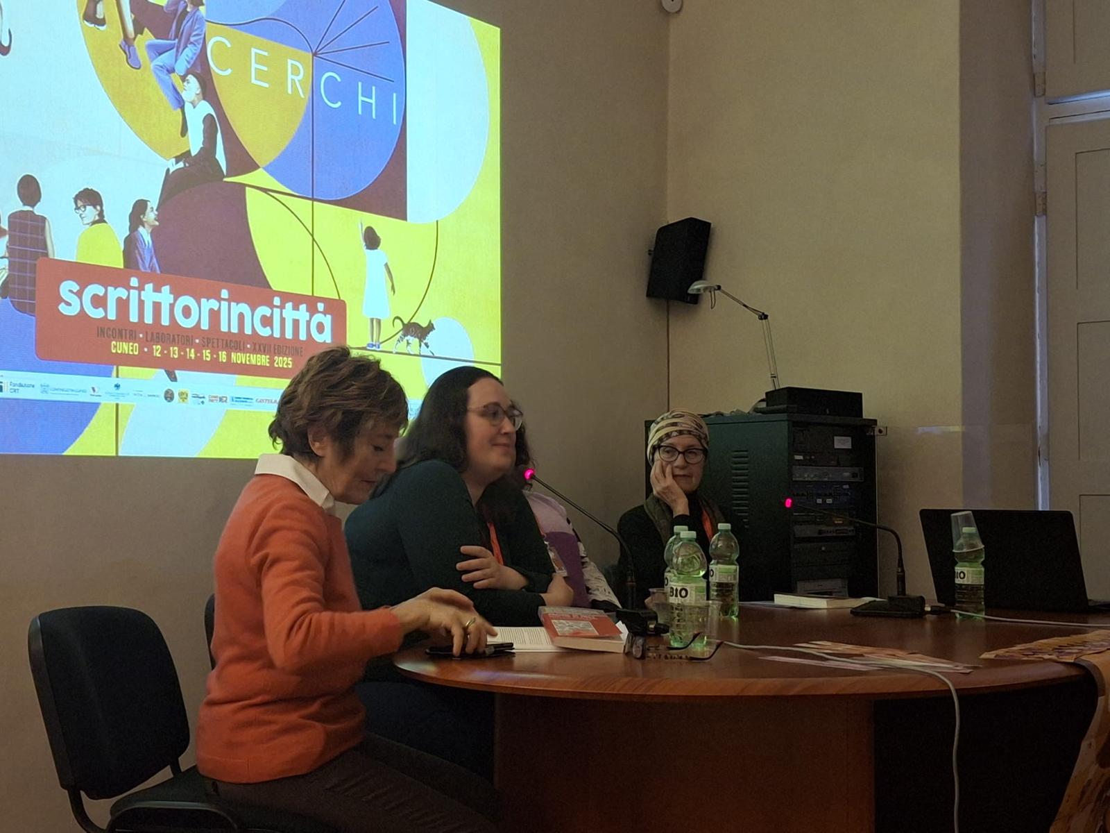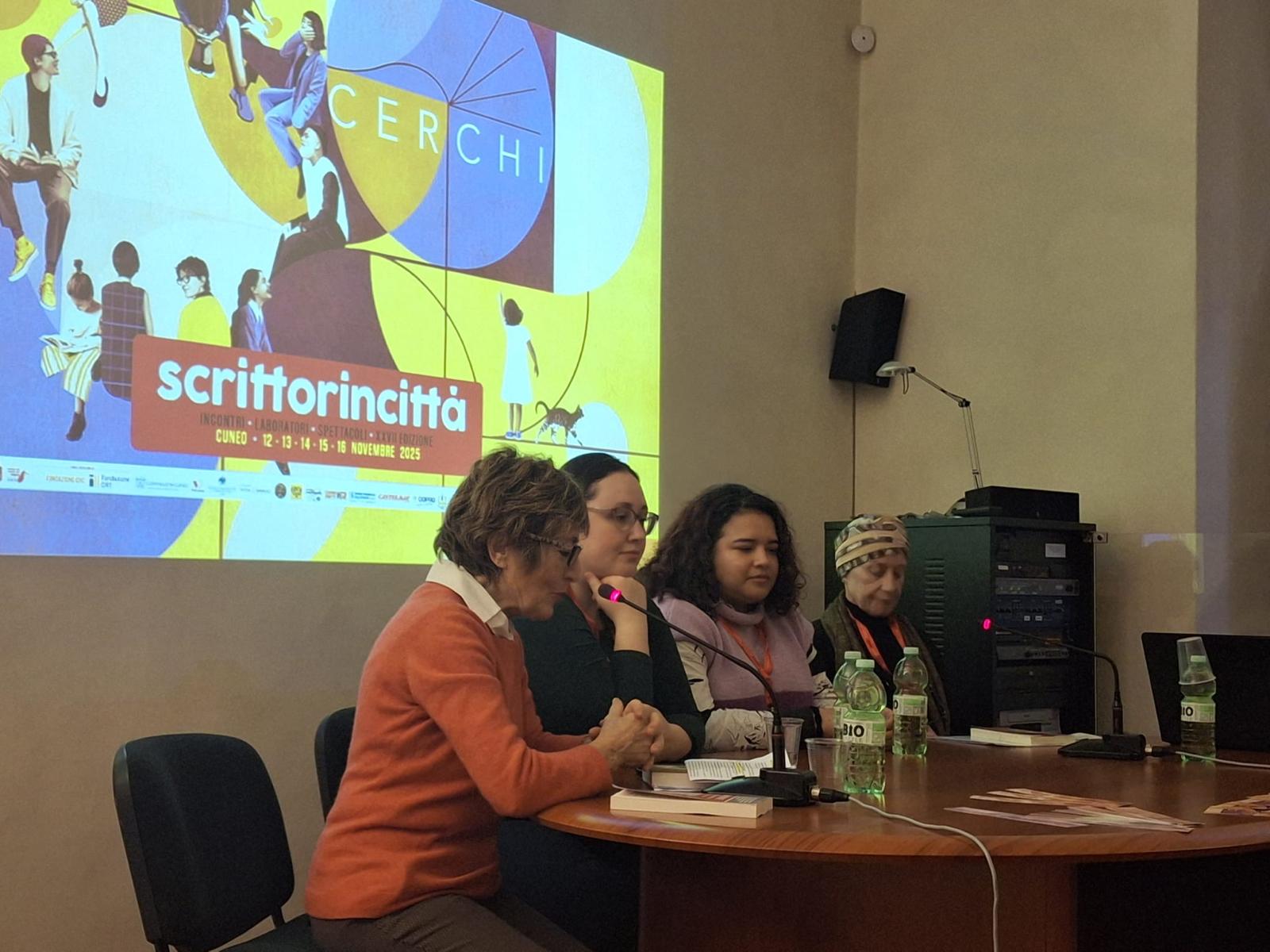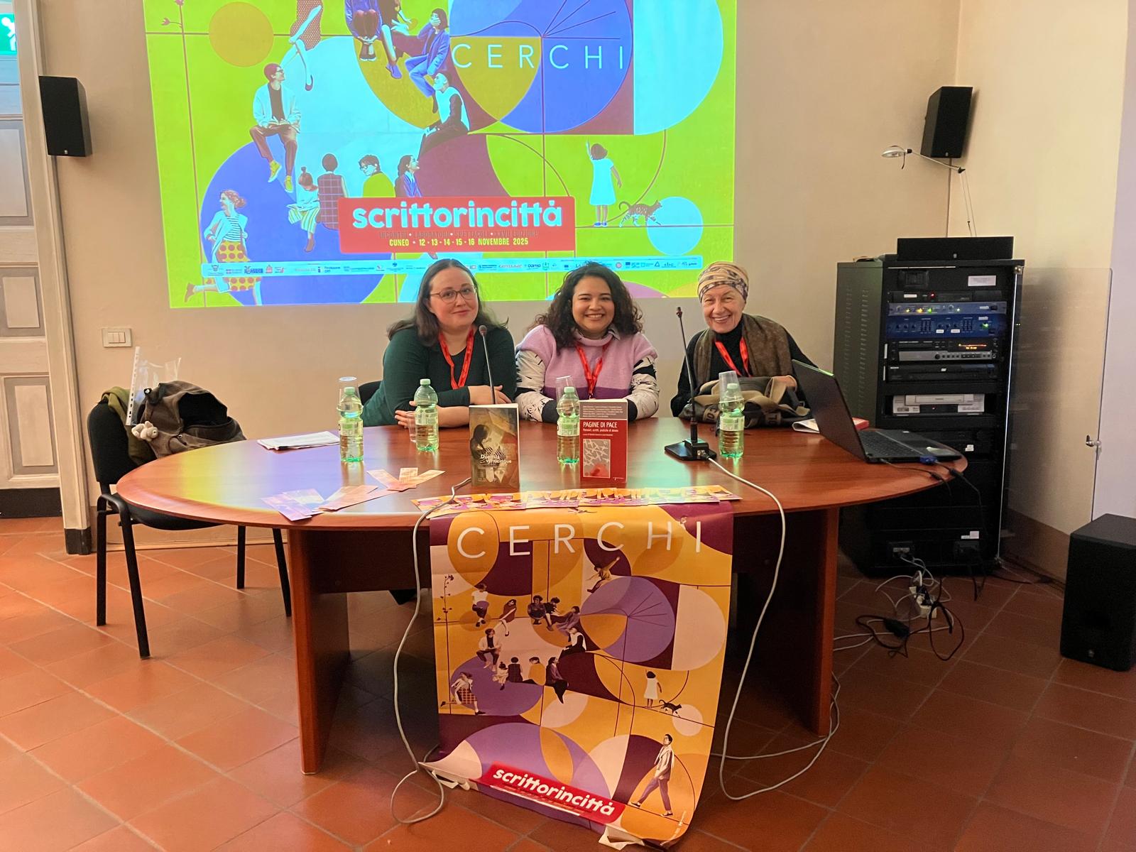 Il Concorso Lingua Madre compie vent’anni e come parte dei festeggiamenti si è rinnovata domenica 16 novembre anche la collaborazione con il festival di Cuneo Scrittorincittà, grazie a un incontro dedicato alle vincitrici della XX edizione i cui testi sono pubblicati nell’antologia Lingua Madre Duemilaventicinque. Racconti di donne non più straniere in Italia (Edizioni SEB27). Protagoniste sono state Loranda Domi e Nancy Jissel Solis Realpe, vincitrici del XX CLM, che hanno vissuto o reinterpretato la migrazione, propria o della famiglia, per arrivare a riconoscersi e ritrovarsi intere, complesse. Donne, dunque, “in cerca” del proprio posto nel mondo senza negare le multiple appartenenze, ma anche “in cerchio” a tenersi per mano, legate una alle altre in una rete di ascolto e scambio reciproco. Cerchi di donne. Sguardi su migrazione e conflitti è stato infatti il titolo dell’evento, che riprendeva il tema della manifestazione di quest’anno e che si è svolto nella splendida cornice del Museo Casa Galimberti in piazza Tancredi Galimberti 6 a Cuneo.