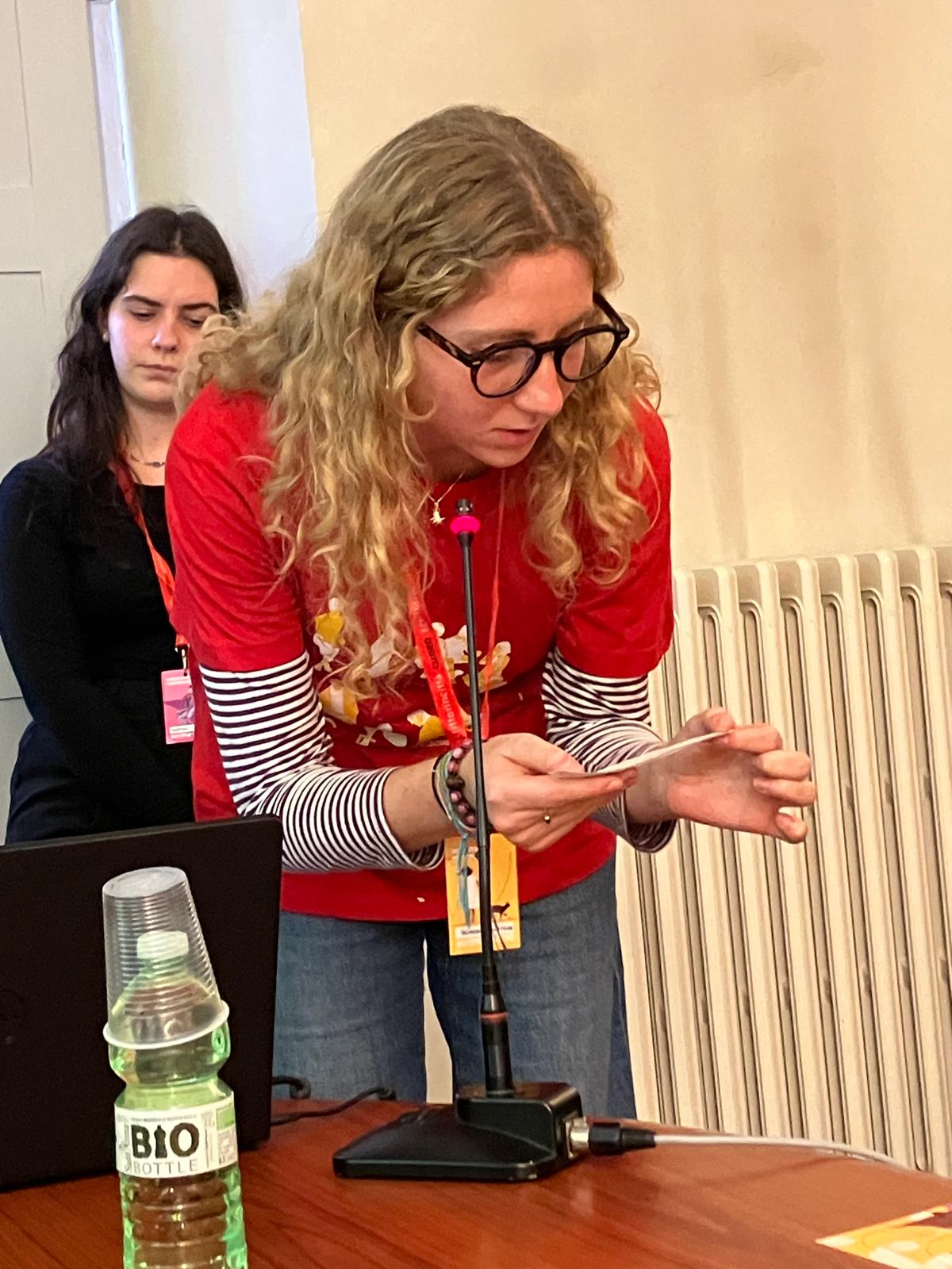 Una linea narrativa tutta femminile come quella seguita dal volume Pagine di pace. Pensieri, scritti, pratiche di donne che è stato introdotto e illustrato al pubblico da Luisa Ricaldone. «Un volume ibrido di forma e contenuto – ha detto la curatrice, anche parte del Gruppo di Studio e della Giuria CLM – che unisce docenti, letterate, scrittrici, poete e artiste come Elisabetta Catamo che ne ha illustrato la copertina con l’opera Colombe e scrittrici dove la raffigurazione di un volo di conciliazione potrebbe ricordare, nel tratto, anche quello di aerei di guerra. Due i fili conduttori: da un lato la ricerca del desiderio contrapposta alla necessità di governo, dall’altro la ricerca di una letteratura antibellicista che attraverso le scritture delle donne conduca a spunti di riflessione alternativi».
